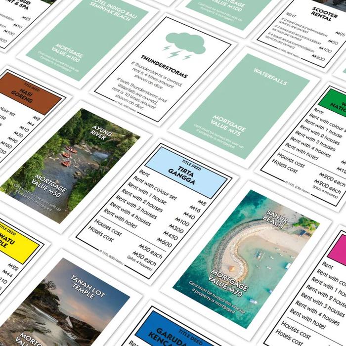 Age : 8+ 2-6 Players Experience the enchanting beauty of Bali with this captivating new edition of MONOPOLY. Celebrating the island's iconic attractions and landmarks, this edition provides a unique journey through Bali's rich culture, stunning landscapes and vibrant traditions.
